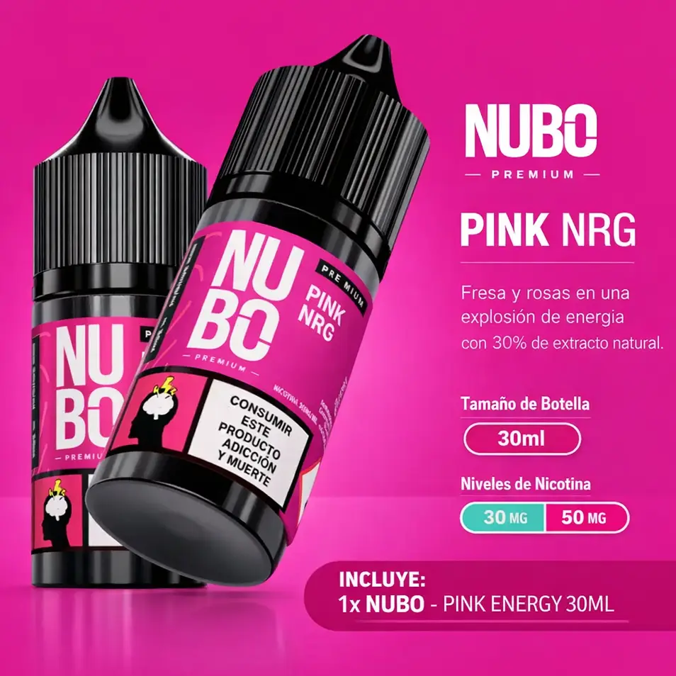 Nubo – Pink Energy 30ML combina fresas y rosas. Con un 30% de extracto natural, en presentación de 30ml disponible en 30mg y 50mg
