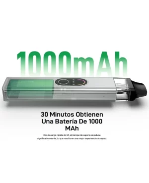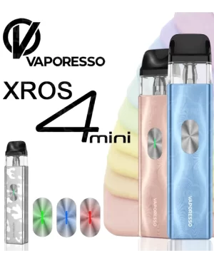 El Vaporesso XROS 4 Mini Kit tiene una batería de 1000mAh que se puede cargar a través de un cable de carga USB-C. El XROS 4 Mini Kit tiene una capacidad de vaina de 3ml que tiene una resistencia de 0,4ohm y utiliza la tecnología COREX 2.0 que proporciona un sabor intenso y una mayor vida útil de la vaina. Todas las vainas de la serie XROS son compatibles con el XROS 4 Mini de Vaporesso. Puede ajustar el flujo de aire con la perilla deslizante en la parte delantera y cambiar entre MTL a RDL.
