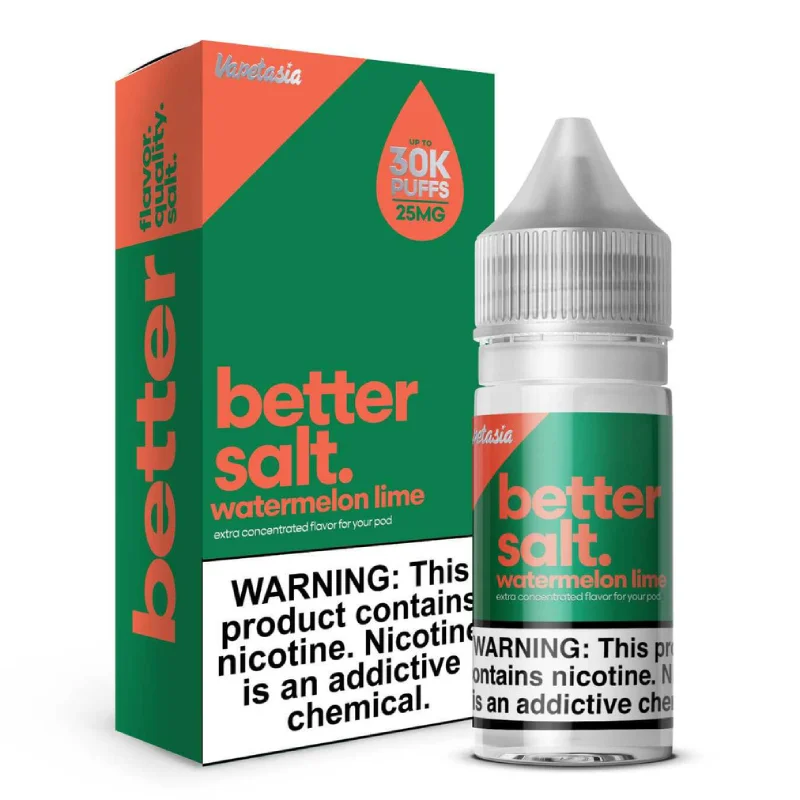 Descubre una combinación refrescante y perfectamente equilibrada con Better Salt Watermelon Lime de Vapetasia. Este e-liquid de sales de nicotina mezcla el sabor dulce y jugoso de la sandía con un toque cítrico y vibrante de lima, creando una experiencia fresca y deliciosa en cada calada.